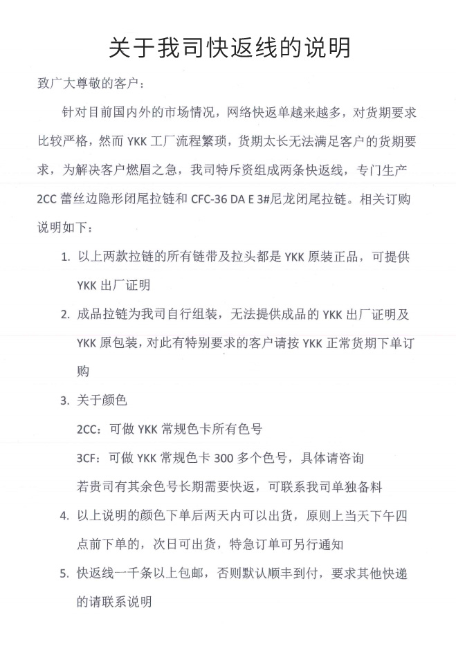 寶晨與國際知名品牌YKK簽約成為長期合作伙伴,致力于經營YKK出品的各種拉鏈;